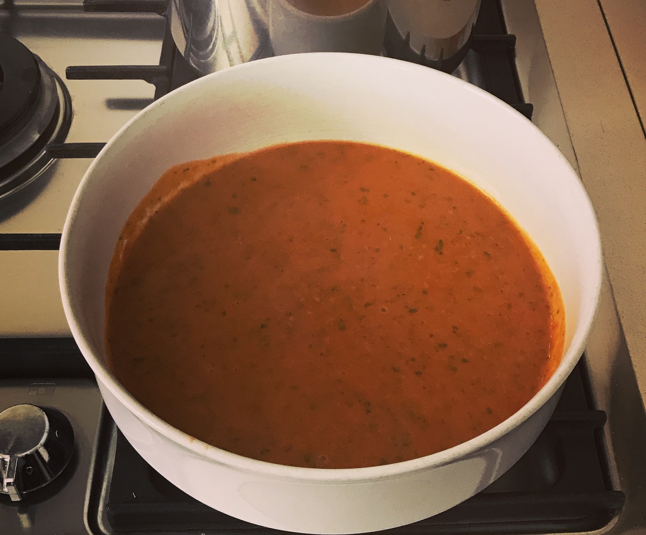 Ne conosco due versioni, quella ‘estiva’ quando i pomodori e il basilico sono al meglio. La seconda è quella ‘invernale’, fatta con i pelati e un ricco soffritto. Si cuoce almeno 40 minuti, risulterà di un colore rosso scuro. Si conservava in frigo per ‘la’ settimana, scorta indispensabile in una famiglia con prole.