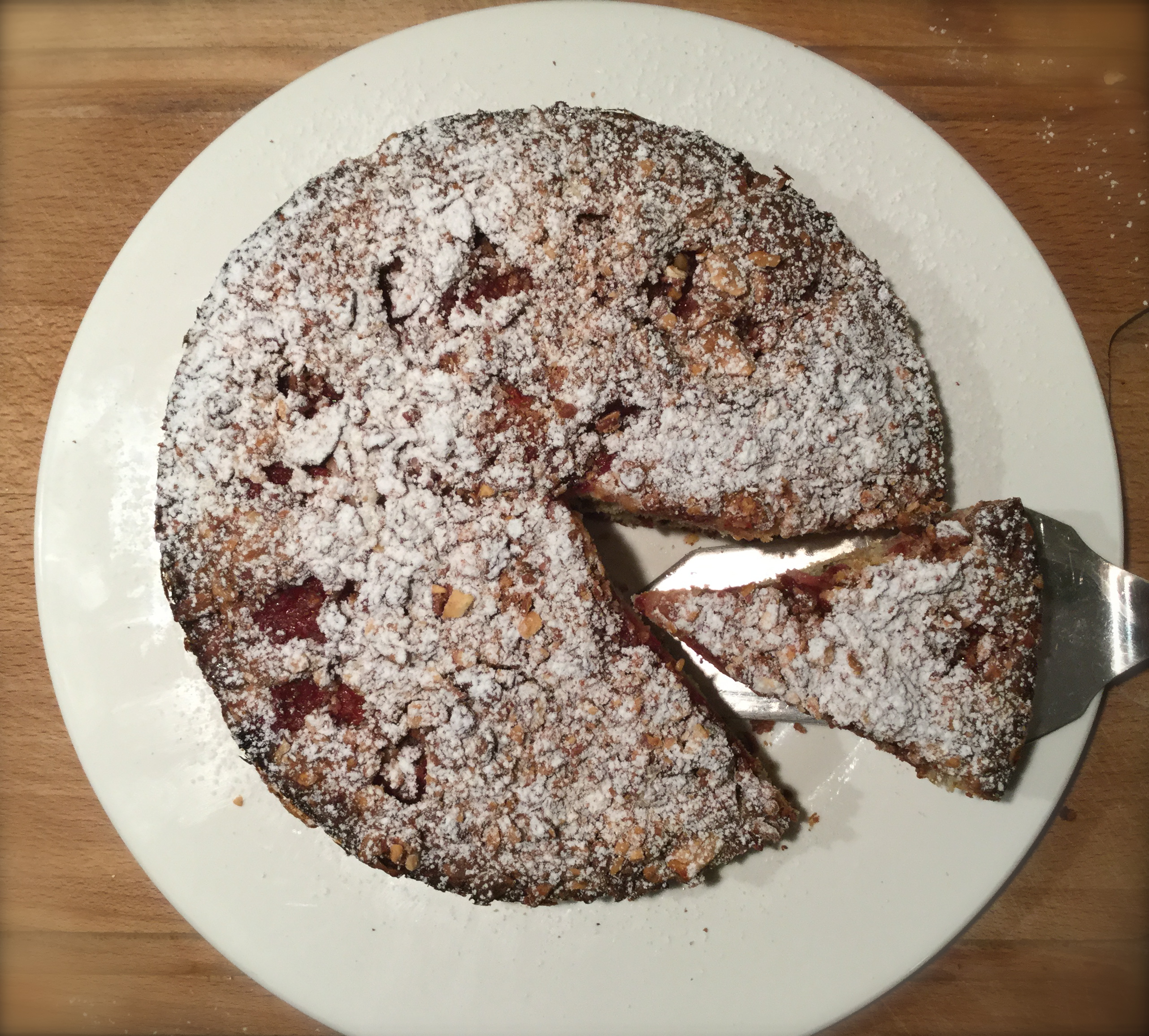 Ora ricoprite con il resto dell’impasto, aggiungete il resto delle fragole e infine il resto delle mandorle. Infornate a 180 gradi ventilato per circa 30/35 minuti.
