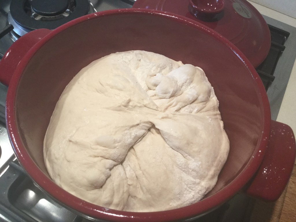 Ho usato la pirofila di Emile Henry da 22 cm. La pagnotta è venuta bene ma proverò a farlo in quella più grande perchè preferisco più crosta e meno mollica. Vedete voi a seconda del vostro gusto.