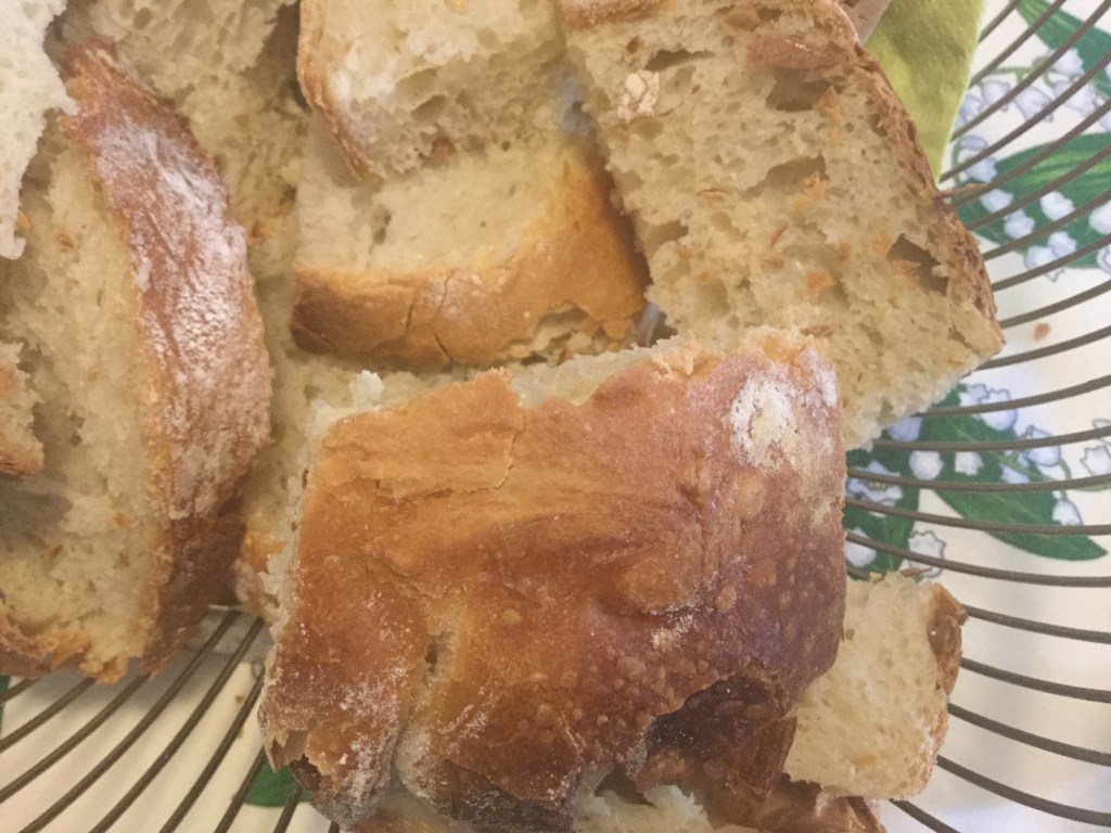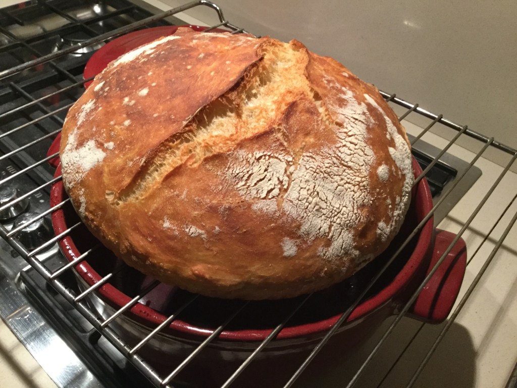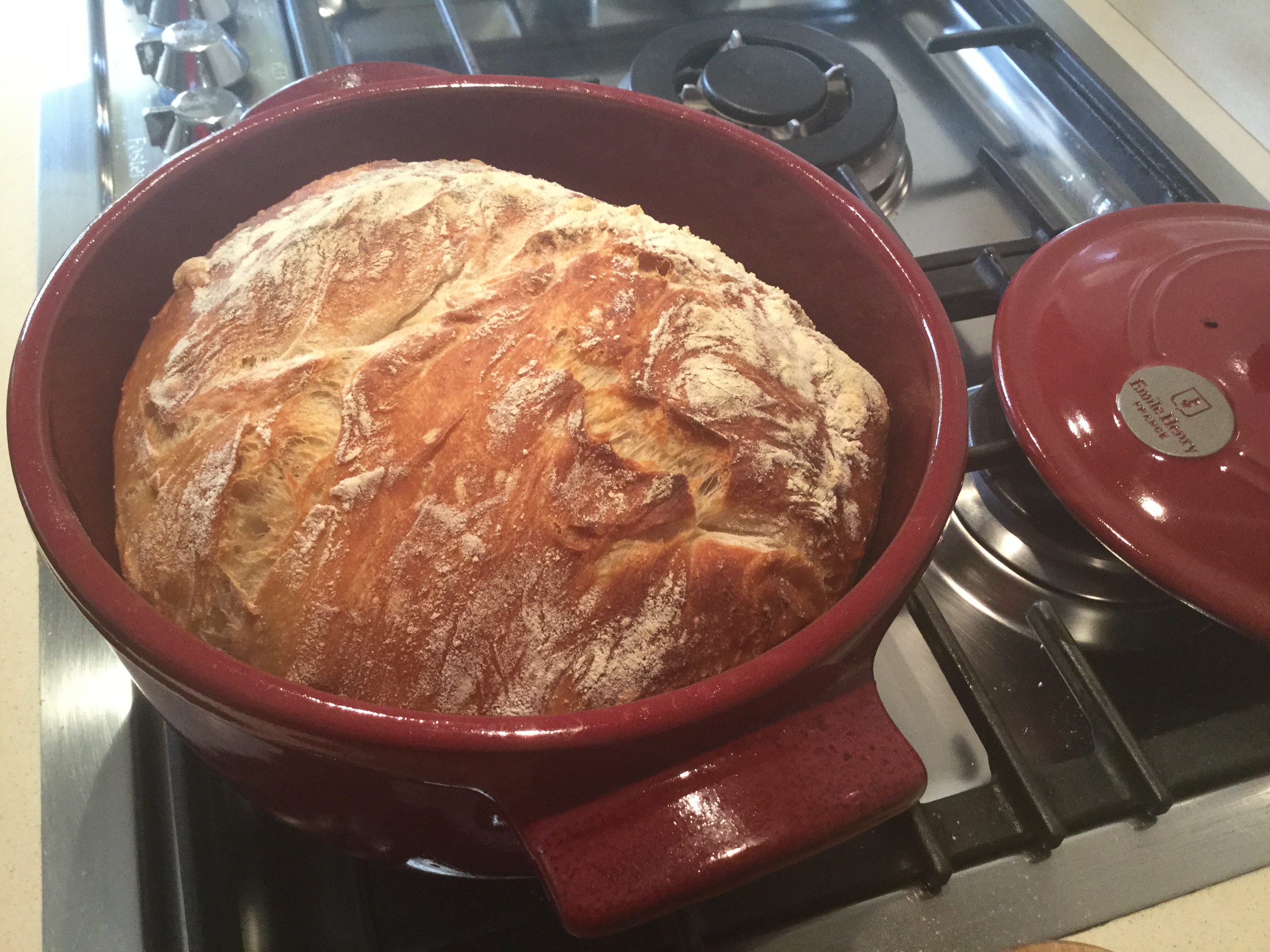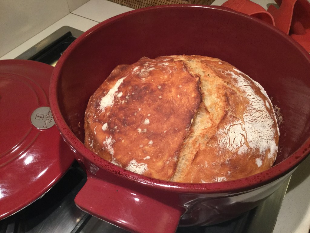 In una pagina a caso, non ricordo neanche come ci fossi arrivata, trovai l’articolo di un giornalista italiano che decantava il pane di una panetteria di Brooklyn (NY) gestita da italiani: preparavano un pane senza impastarlo, ma, soprattutto, lo cuocevano in un normale forno e dentro una pentola. Ecco quello che cercavo!!! Mi misi subito all’opera ed il risultato fu fantastico e quindi molto incoraggiante. Oggi ho deciso di replicarlo visto che sarà una lunga settimana di festa tra Pasqua e il Primo Maggio. Provatelo e poi mi direte….