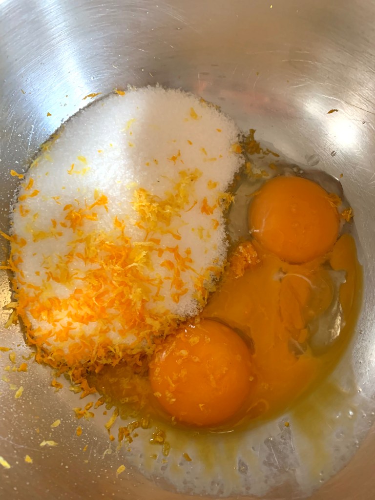 Lavorate in una ciotola a parte la ricotta con un cucchiaio di legno sino a renderla una crema. In una terrina montate le uova intere, le scorze, la vaniglia e lo zucchero con il frullino, devono diventare chiari e spumosi. Ora setacciate la farina con il lievito. Aggiungete il burro a filo, il latte e poi un cucchiaio della farina, sempre frullando a media velocità.Ora potete aggiungere la ricotta, un cucchiaio per volta. Continuate a frullare per qualche minuto, sino a ottenere una bella crema spessa ma gonfia.