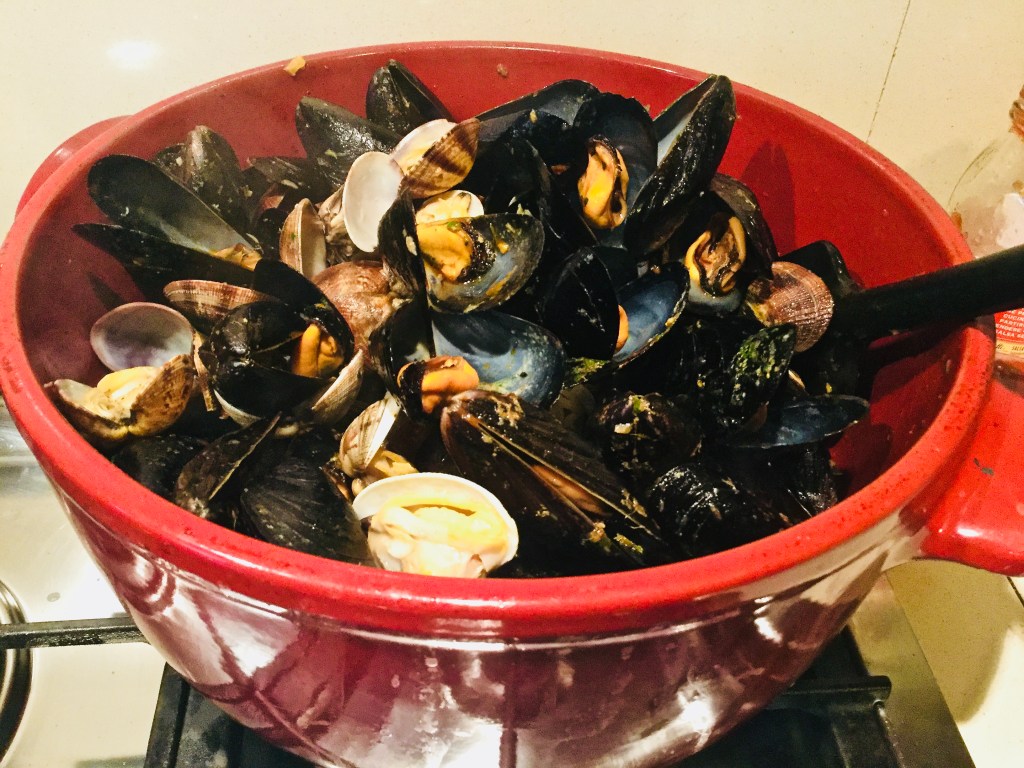 Stamattina il mercato era uno spettacolo, soprattutto quello del pesce. Si vedono i primi turisti con le loro macchine fotografiche, chi con i cellulari spianati, in un valzer di odori, di colori, con le voci dei pescivendoli che cercano di attirare i clienti…..! Ho deciso di cucinare la zuppa di cozze e arselle, a modo mio.