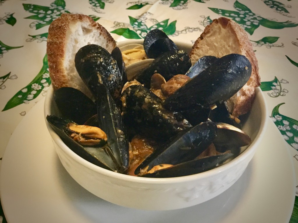 Con il suo brodino piccante che ammorbidisce la fetta di pane nel fondo e tutti quei gusci aperti che troneggiano sopra il tutto. E’ un piatto conviviale, da sporcarsi le dita per assaporarlo meglio. Con un pò di verdure in pinzimonio sarà un pranzo o una cena di tutto rispetto!!