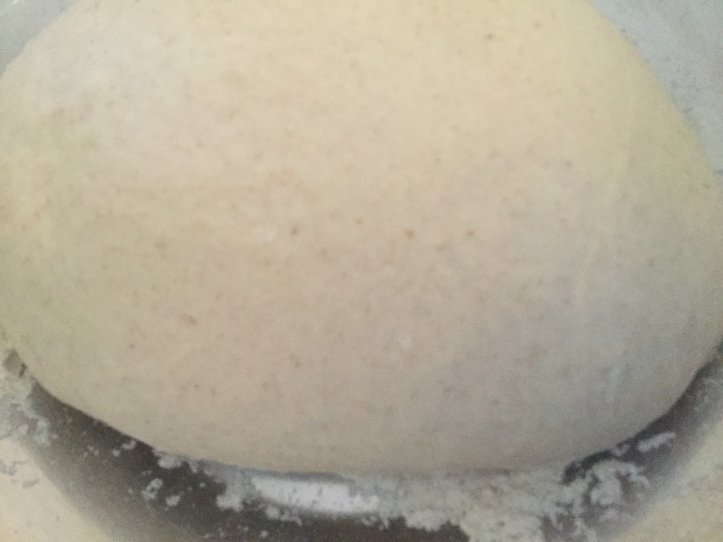 Alla fine ho ottenuto un impasto un pò appiccicoso ma uniforme. L’ho messo in una grande ciotola dentro il forno spento ed ho aspettato che raddoppiasse. Ci sono volute meno di due ore.