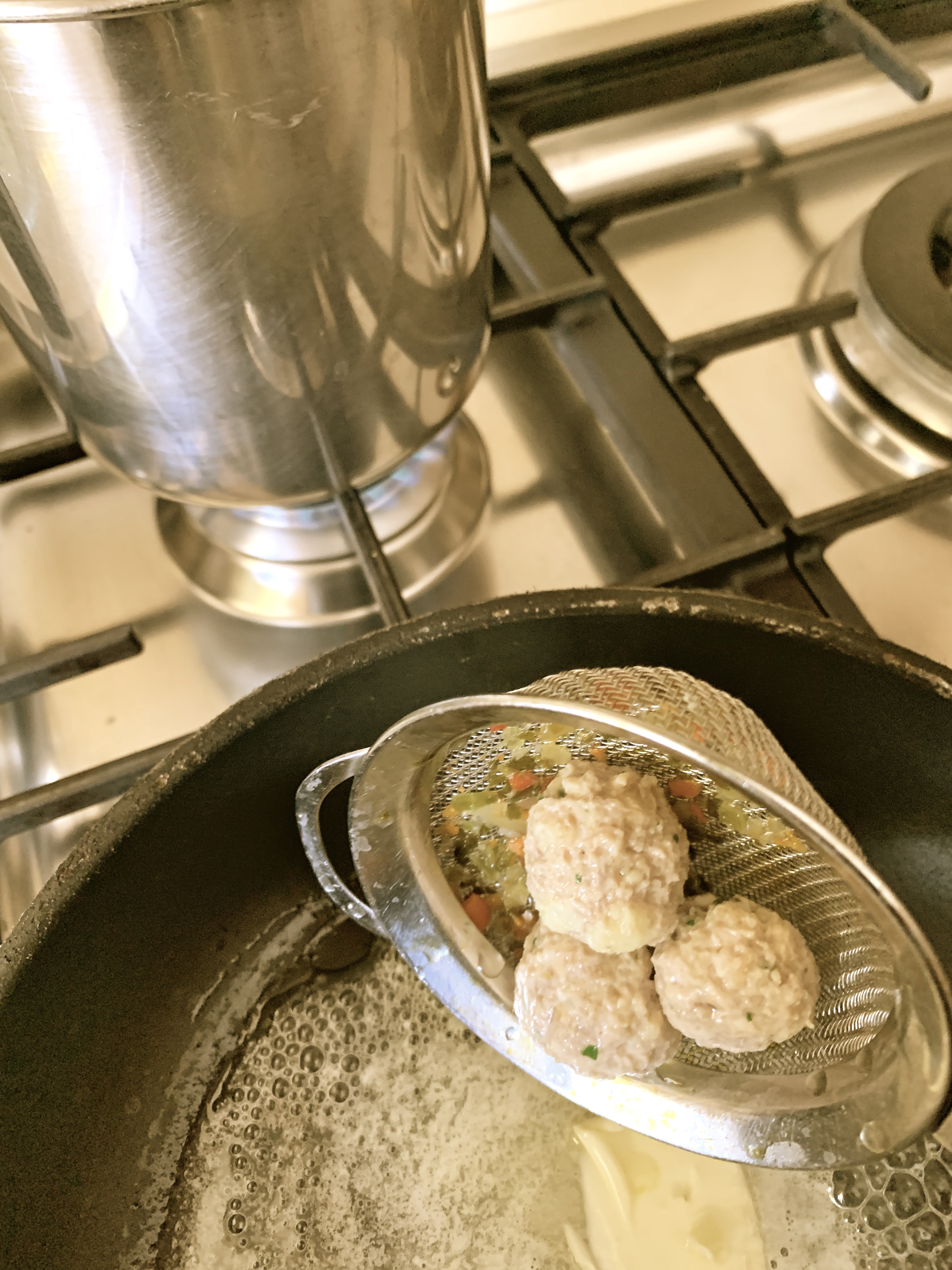Preparate le vostre polpette come al solito, o come le faccio io, l’importante è che siano piccole. Fate bollire il brodo e, poche per volta, tuffatele sino a che cambino colore.