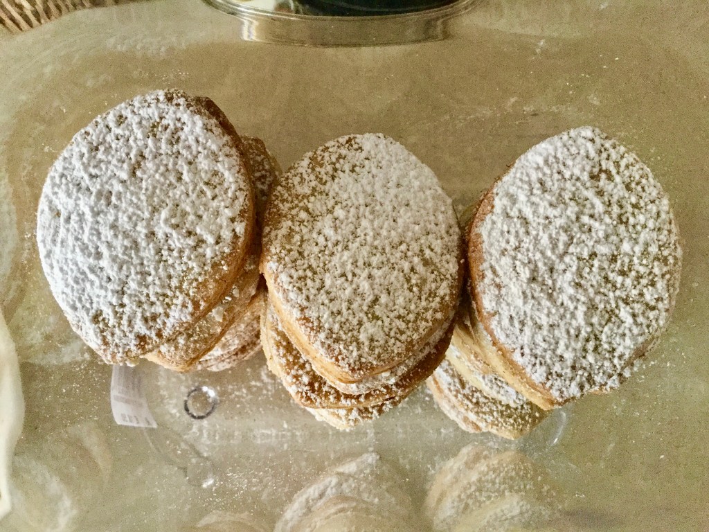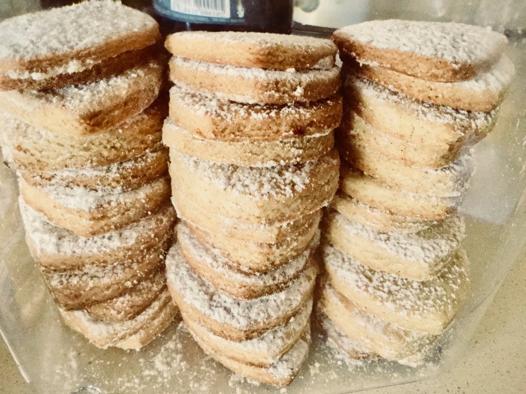 Ho infornato a 180 gradi per circa 10 minuti. Quando i bordi si sono colorati ….. pronti! Una volta intiepiditi ho cosparso di zucchero a velo e messi nel loro barattolo…. non proprio tutti! Buonissimi.