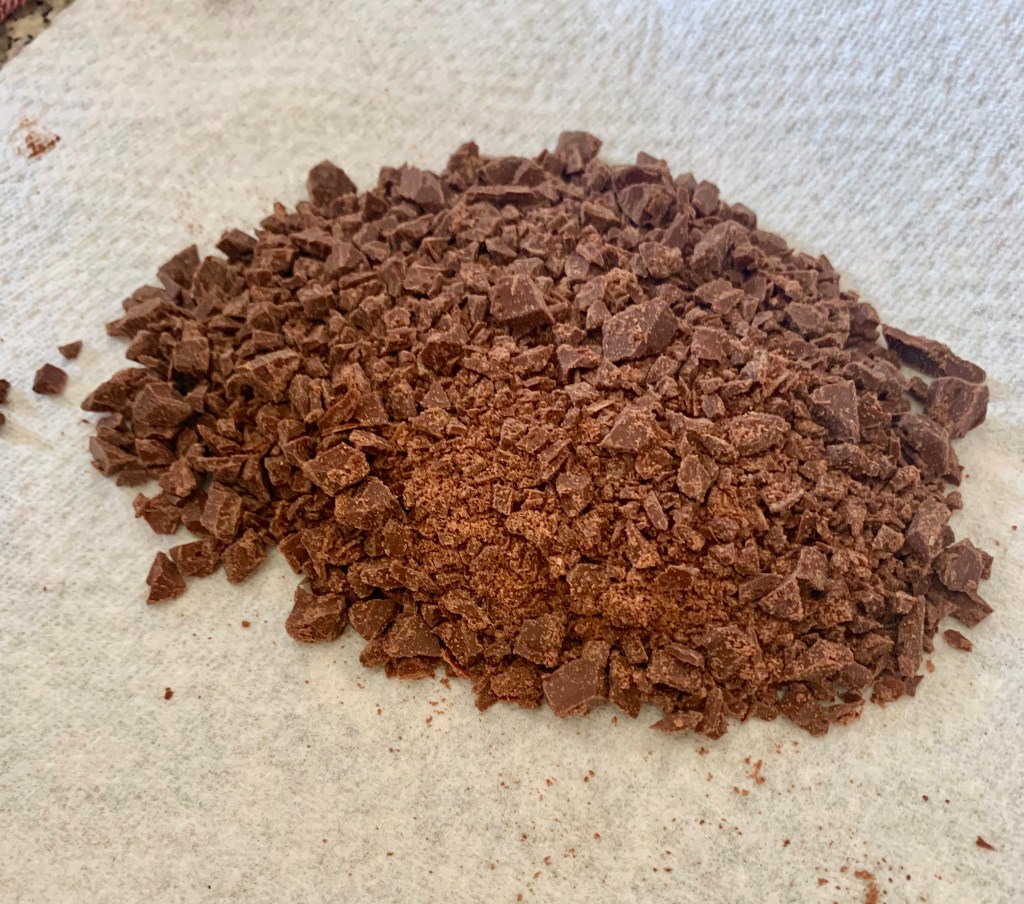 Alla fine ho aggiunto il cioccolato. Trasferito l’impasto in una teglia foderata con carta forno, ho cotto la torta per circa 25/30 minuti, ho usato lo stecchino per controllare la cottura. Una volta raffreddata ho cosparso di zucchero a velo.