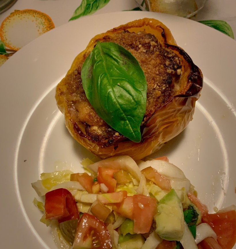 Ho cercato tanto la ricetta, ma non ho trovato nulla di così semplice: ricette con acciughe e tonno, con la passata di pomodoro, con la carne, insomma nessuna che avesse altro che un riso bianco e il peperone. Naturalmente non è possibile che quello che ho mangiato da bambina avesse solo riso bianco all’interno e il peperone all’esterno, ma ho provato a replicarlo più volte, ma niente da fare, che abbia o meno idealizzato quel sapore, nessuno dei tentativi si è mai avvicinato lontanamente al mio ricordo!