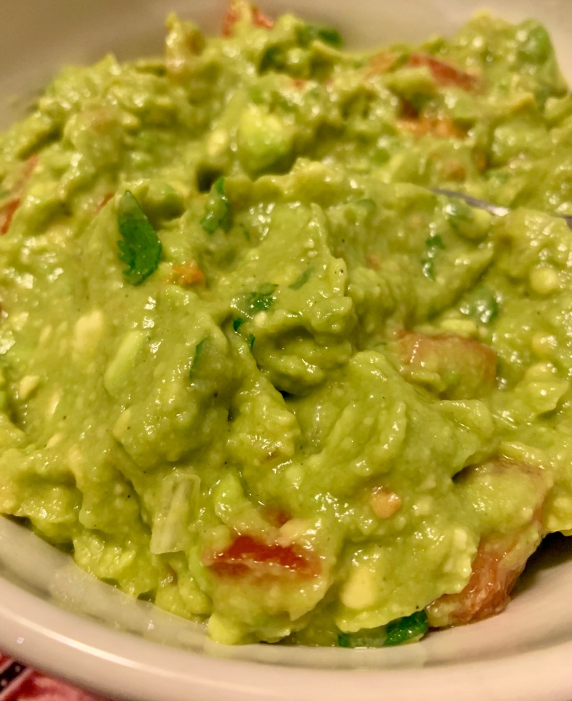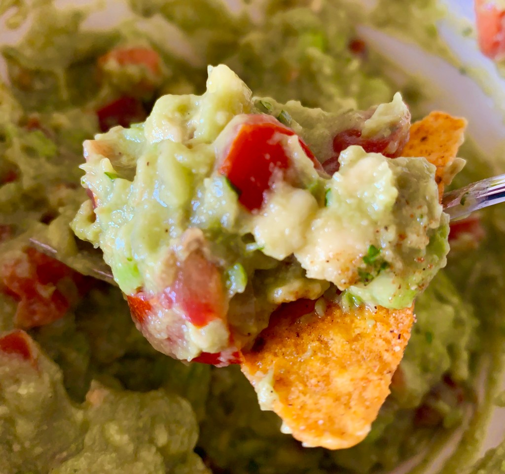 L’avocado è piuttosto calorico, ma i suoi grassi vegetali sono salutari, per cui a parte metterlo nell’insalata, va da se che trasformarlo in questa salsa godereccia è un attimo. Ci sono molte ricette diverse, più o meno piccanti, del guacamole. Frullare o lavorare solo con la forchetta la polpa, con aglio o senza aglio. La mia ricetta non prevede aglio, pochissima cipolla , risulta grumosa perché non frullata, molto fresca per il succo e la scorza di lime e i pezzetti di pomodoro. Come spezie uso il pepe e una puntina di peperoncino per spingere un pò il sapore ma alla fine non sarà una salsa piccante ma molto fresca, buonissima anche con il pane oltre che con i nachos tradizionali.