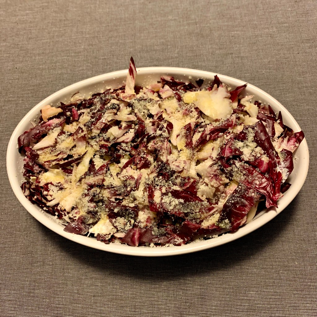 Infine con il radicchio e il gorgonzola ho preparato una piccola pirofila con la verdura a strati alternata a tocchetti di gorgonzola, sale e pepe, qualche cucchiaiata di panna da cucina, poco parmigiano.