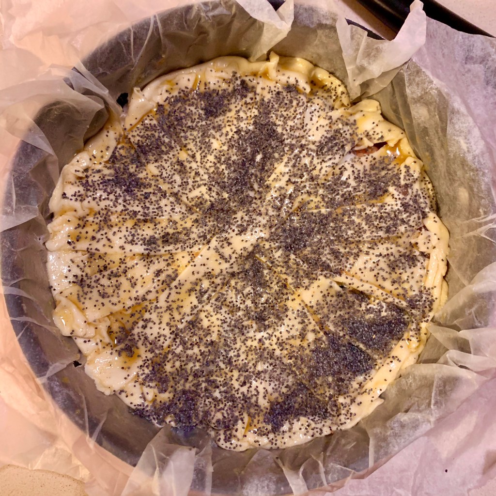Ho spennellato con un uovo sbattuto e cosparso di semini di papavero.