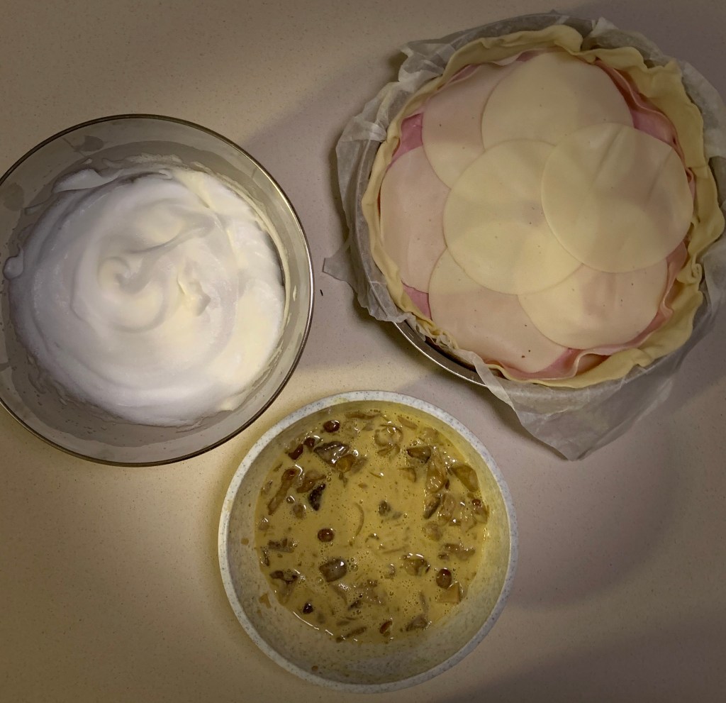 Gli albumi montati renderanno la quiche come un soufflé racchiuso nella pasta sfoglia. Bellissima!
