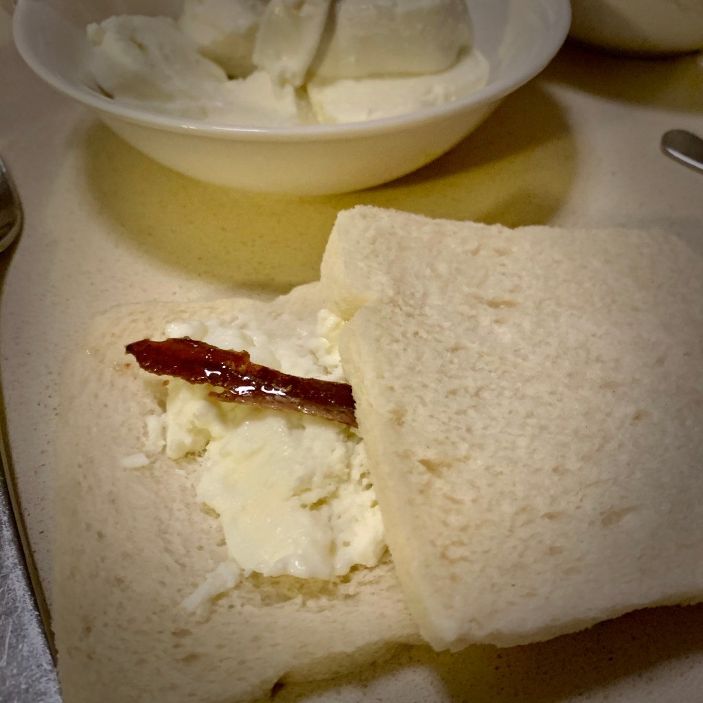 Prima di tutto ho affettato la mozzarella a fette e in parte a tocchetti. Deve ricoprire la fetta di pane ma non sino ai bordi. Deve essere spessa, soprattutto se fatta in forno, non la maneggerete e quindi non si romperà. Ho dunque disposto sulla prima fetta di pan carrè la mozzarella e sopra ho messo 2 acciughe a croce. Ho coperto con un altra fetta di pane ed ho pressato con la mano. Una volta preparate tutte le fette le ho messe in frigo mentre ho sbattuto le uova con pepe e sale e disposto il pan grattato per impanarle.