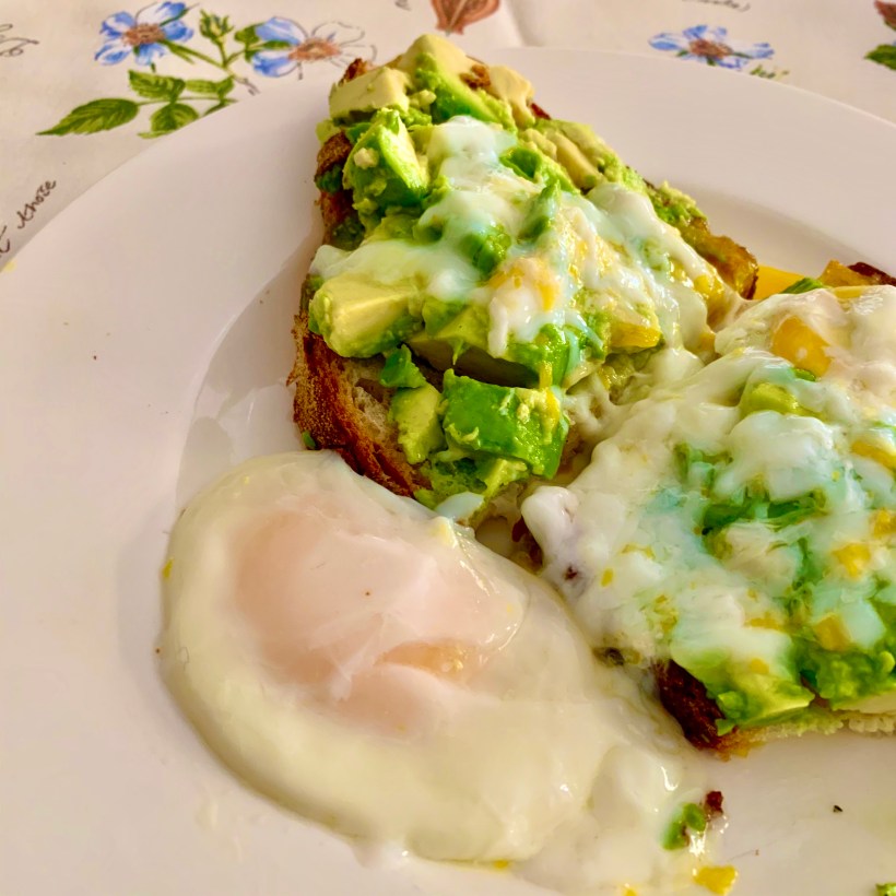 Le cospargo con l’avocado, vi adagio l’uovo ( uno per fetta) e voilà !