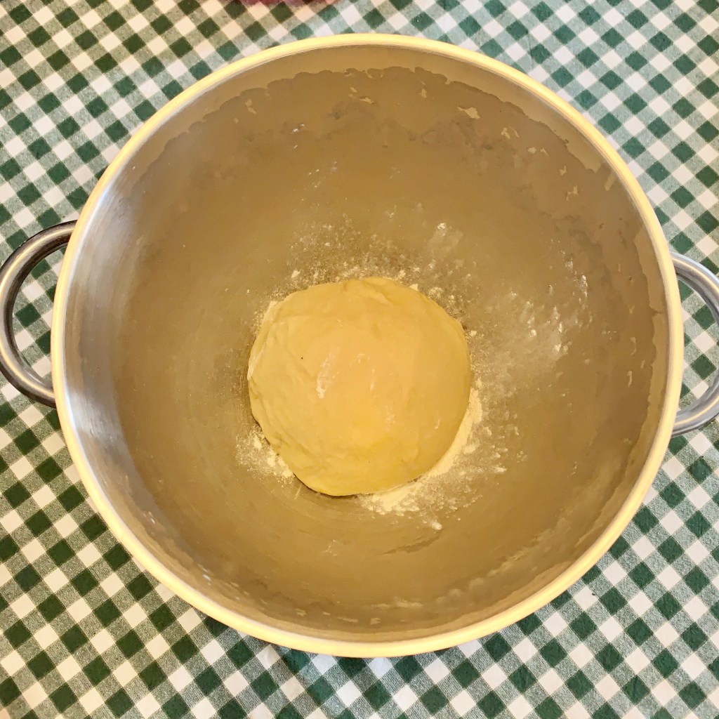 L’impasto ottenuto deve essere omogeneo e compatto. Ho fatto quindi una palla, ho spolverato il fondo della planetaria di farina ed ho adagiato l’impasto. Ho coperto e fatto lievitare per alcune ore, sino al raddoppio, dentro il forno spento con la lucina accesa.