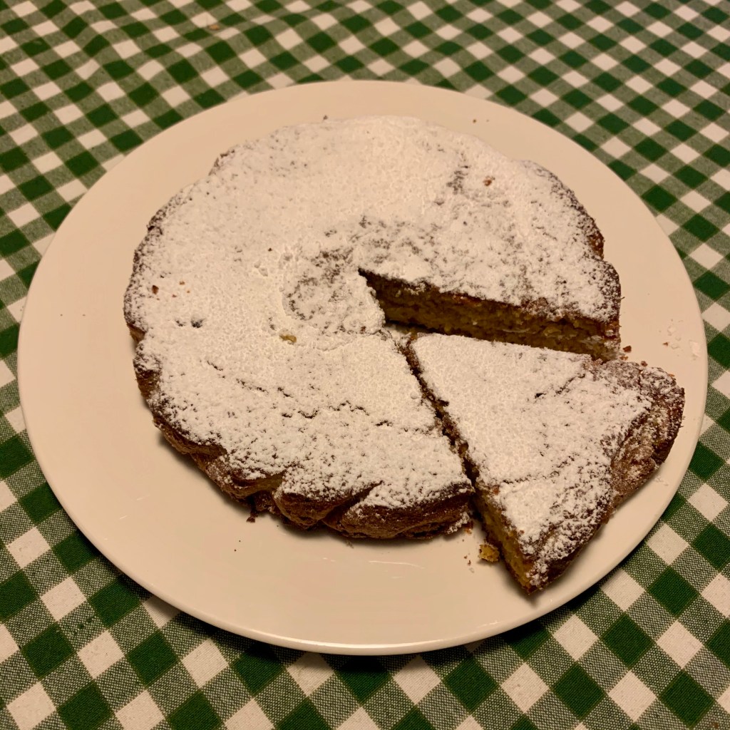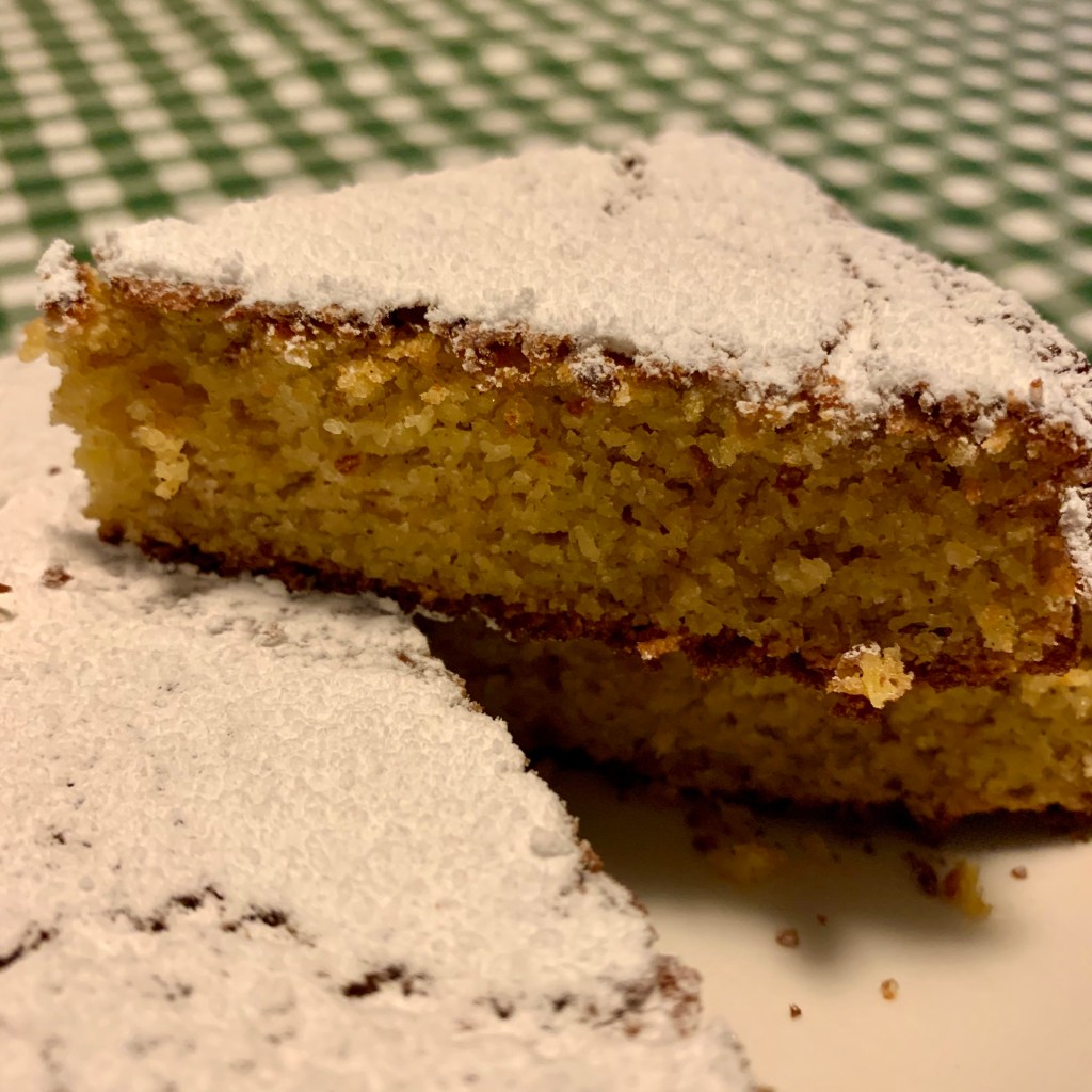 Questo bel ricordo mi ha fatto venire voglia di preparare questa torta, velocissima da fare e fantastica per la colazione o, se avessi la prole ancora a casa, per una merenda con i fiocchi! Il trabocchetto è la cottura: l’impasto ottenuto sarà piuttosto liquido, quindi la cottura è un pò più lunga del solito. Non abbiate fretta e usate la prova stecchino per essere sicuri sul momento di sfornarla.
