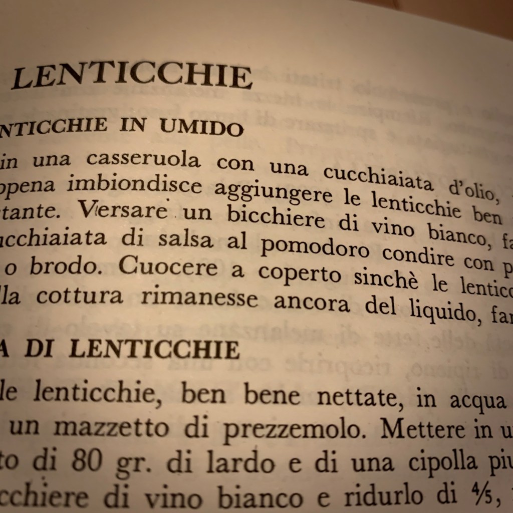 Piatto tipico del primo giorno dell’anno, nelle sere fredde e ventose d’inverno, le lenticchie in umido mi piace rifarle. Tra l’altro ho trovato qualche fetta di zampone nella bottega sotto casa. Questa ricetta ha origine dal libro, il mio Santo Graal culinario, di Luigi Carnacina, regalo di mia mamma appena mi sono sposata!