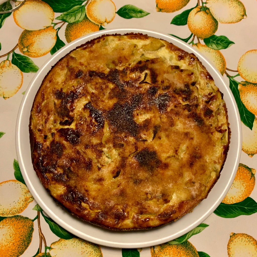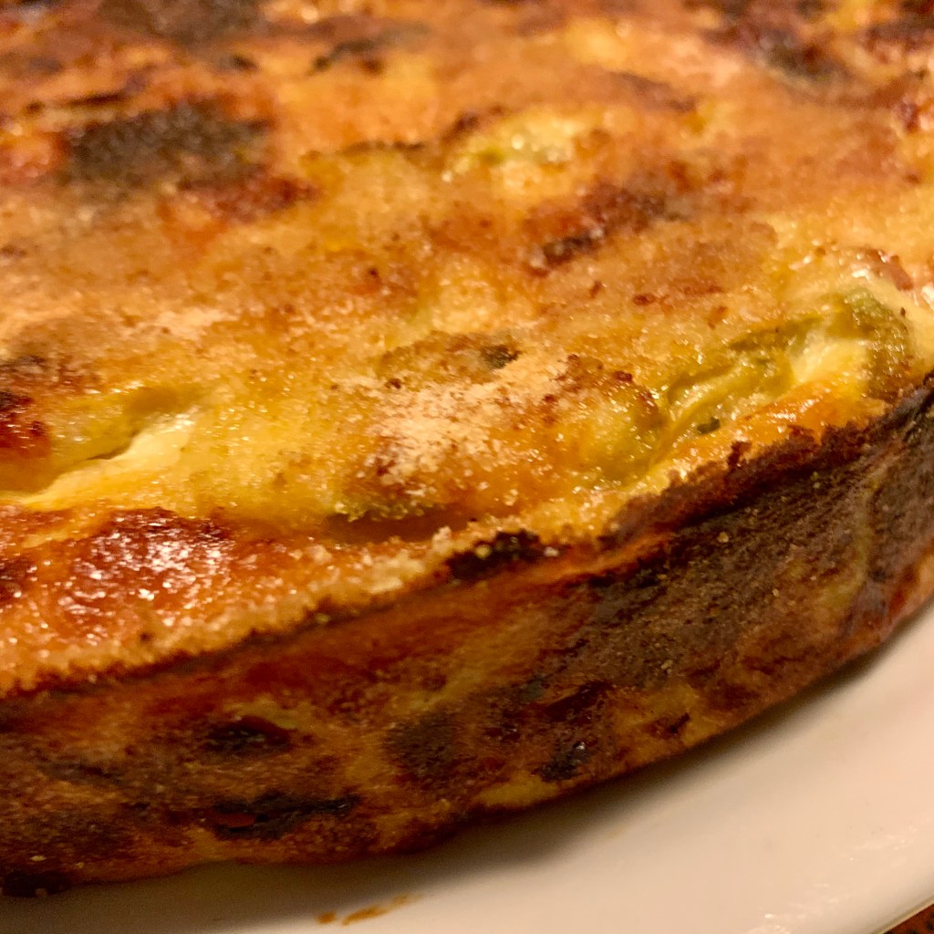 Ho versato il tutto nella tortiera e ho sparso parmigiano e pangrattato sulla superficie. Ho infornato a 180 gradi ventilato per circa 30 minuti.