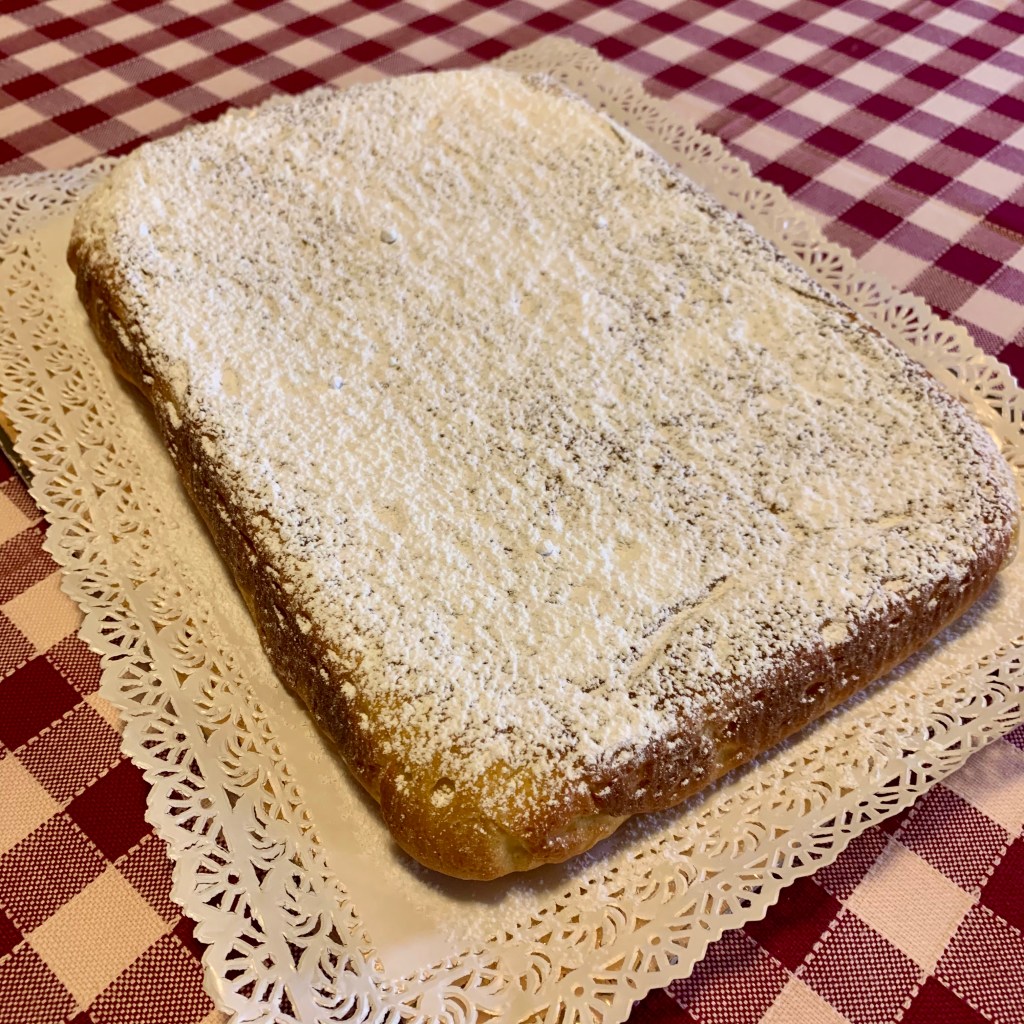 Qualche settimana fa mentre cercavo nuove ricette, in realtà ricette di dolci, mi sono imbattuta in una foto che mi ha conquistato. Il dolce in questione era una ‘mattonella’ bassa, vista così sembrava una torta margherita non lievitata, con un bel giglio fiorentino nel centro di guarnizione. Ho pensato a qualcosa di nuovo per la colazione, ma leggendo la ricetta la cosa si è fatta ancora più interessante…