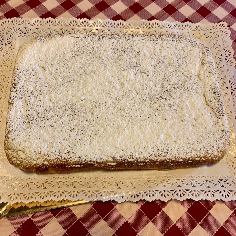 La così chiamata ‘schiacciata fiorentina’, da non confondere con la versione salata, si tratta di una sorta di pane dolce, più torta che pane in effetti, con aromi vari, cotta in una teglia bassa e rettangolare. Si usa gustarla come dolce a fine pasto, accompagnata dal vin santo. Inutile dire che tempo 24 ore e già facevo l’inventario degli ingredienti!