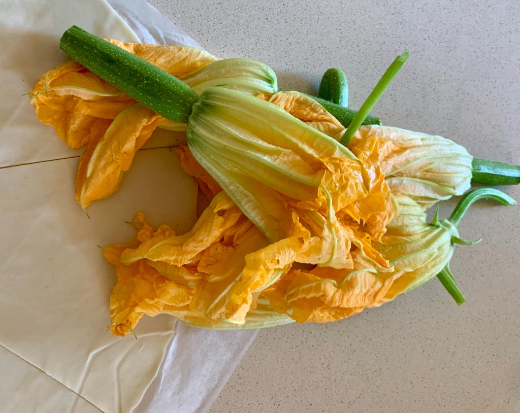 Ieri era giorno di consegna della frutta e la verdura: ho preso un mazzetto di fiori di zucca. Alcuni con una nano zucchina ancora attaccata, freschissimi!