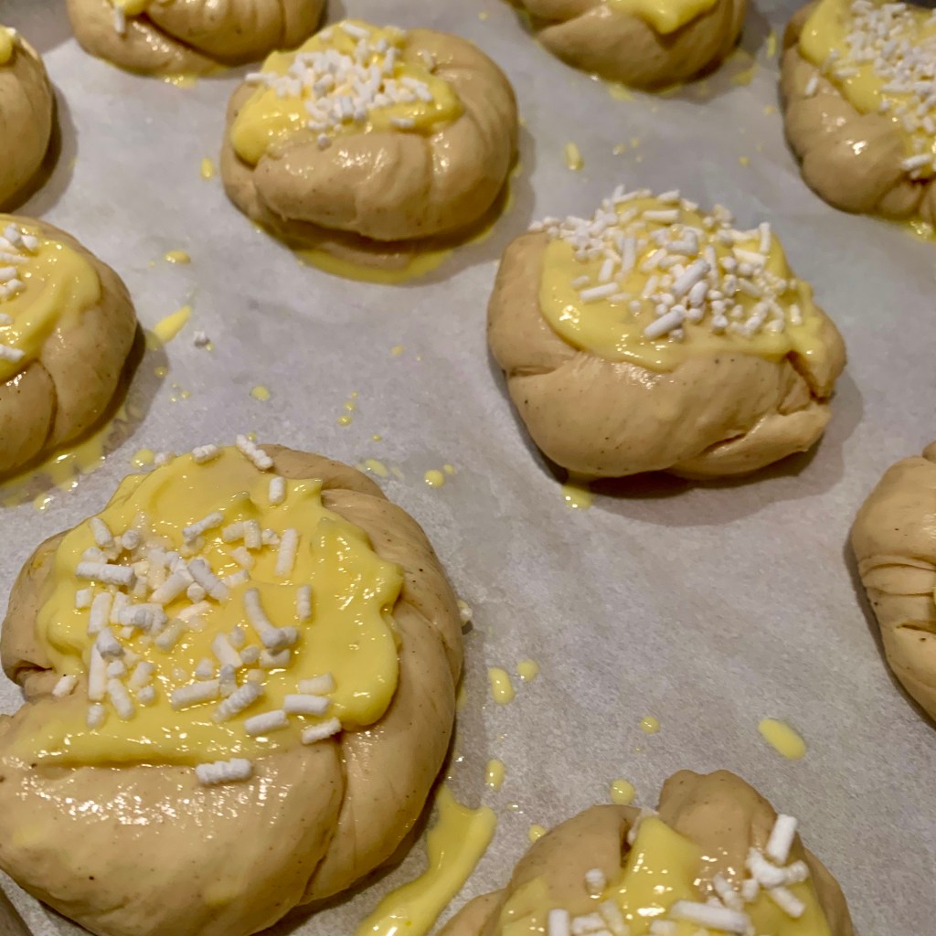 Sempre pronta ad impastare non me lo sono fatto dire due volte, ho accettato la sfida e mi sono data da fare. L’impasto era più che collaudato, la crema pasticciera pure, ho tirato fuori tutto il necessario e via…