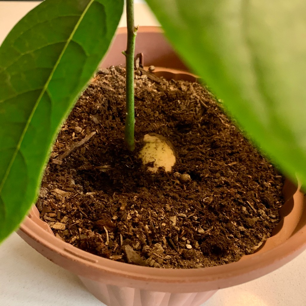 Dove abito ora ho una piccola terrazza, che tra rose, rampicanti, ficus, capelvenere e lavanda è diventata la mia sala giochi dopo la cucina. L’incredibile novità di questa settimana è che avevo messo a bagno nell’acqua un seme di avocado, dopo aver tolto la pellicina sottile e scura che lo ricopriva, così, tanto per vedere cosa succedeva. Dopo una settimana l’ho messo in vaso, mezzo coperto di terra, come avevo letto da qualche parte. Ero certa che nulla sarebbe accaduto ma avevo terriccio e un vaso disponibile e così ci ho provato.