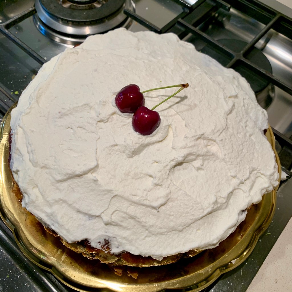 Poco prima ho montato un pò di panna fresca (non zuccherata) e ho ricoperto la parte superiore della torta.