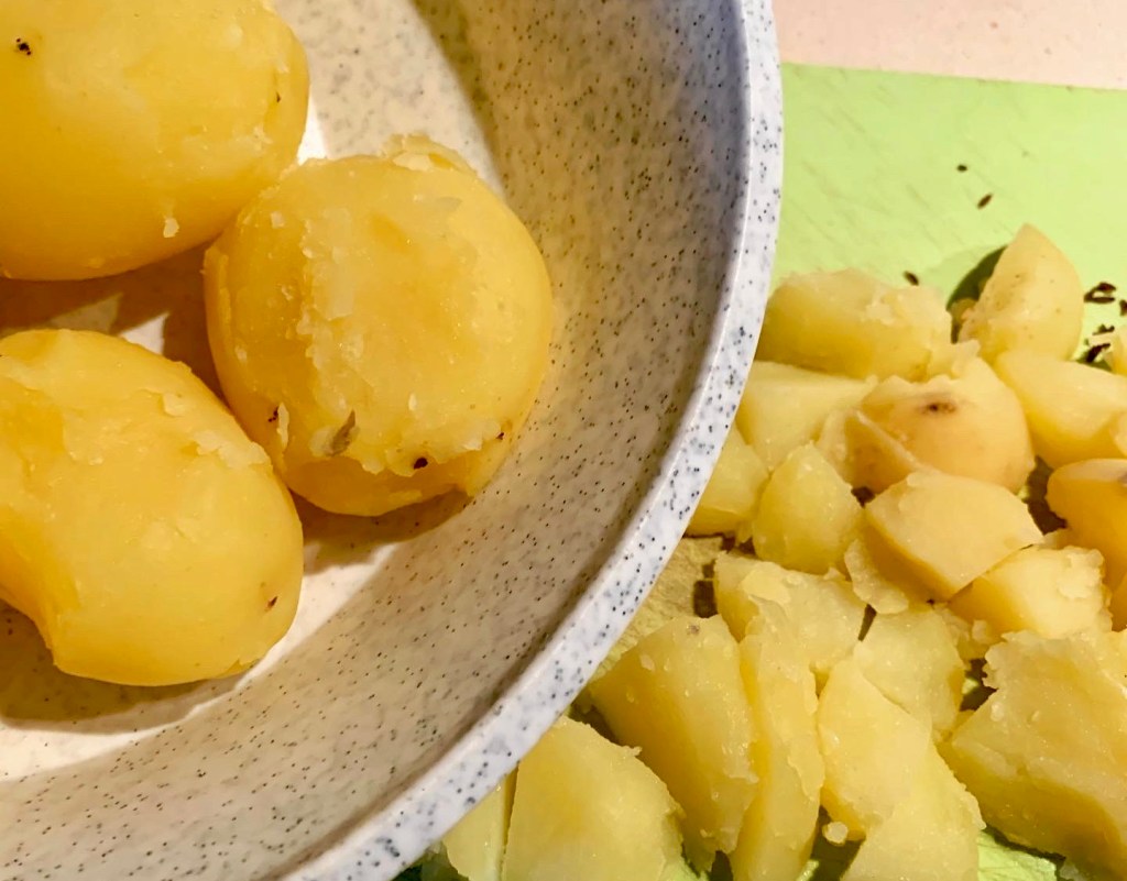 Il risultato è una sorta di insalata di patate fredda che oggi è ancora più buona appena tirata fuori dal frigo per pranzo. Ma la vera sorpresa è la miscela di spezie, per noi inusuali: dà al piatto uno sprint pazzesco, un vero sfizio. Ottima come contorno per un barbecue, magari affiancando anche la versione svizzera…!(https://unerboristaincucina.com/2019/02/15/insalata-di-patate/)