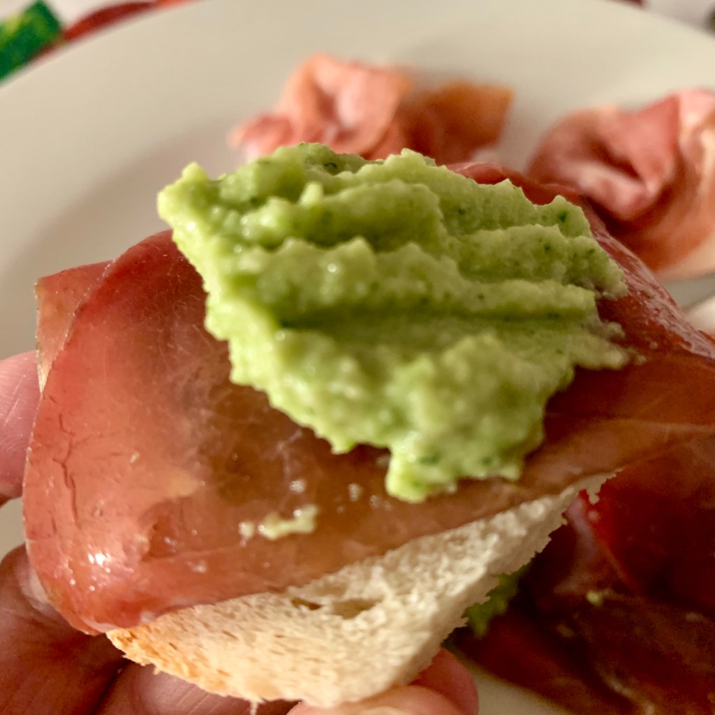 Poi è finita che lo spaghetto l’ho fatto burro e acciughe e il pesto di zucchine è finito spalmato sulle bruschette per l’aperitivo. Spazzolato!
