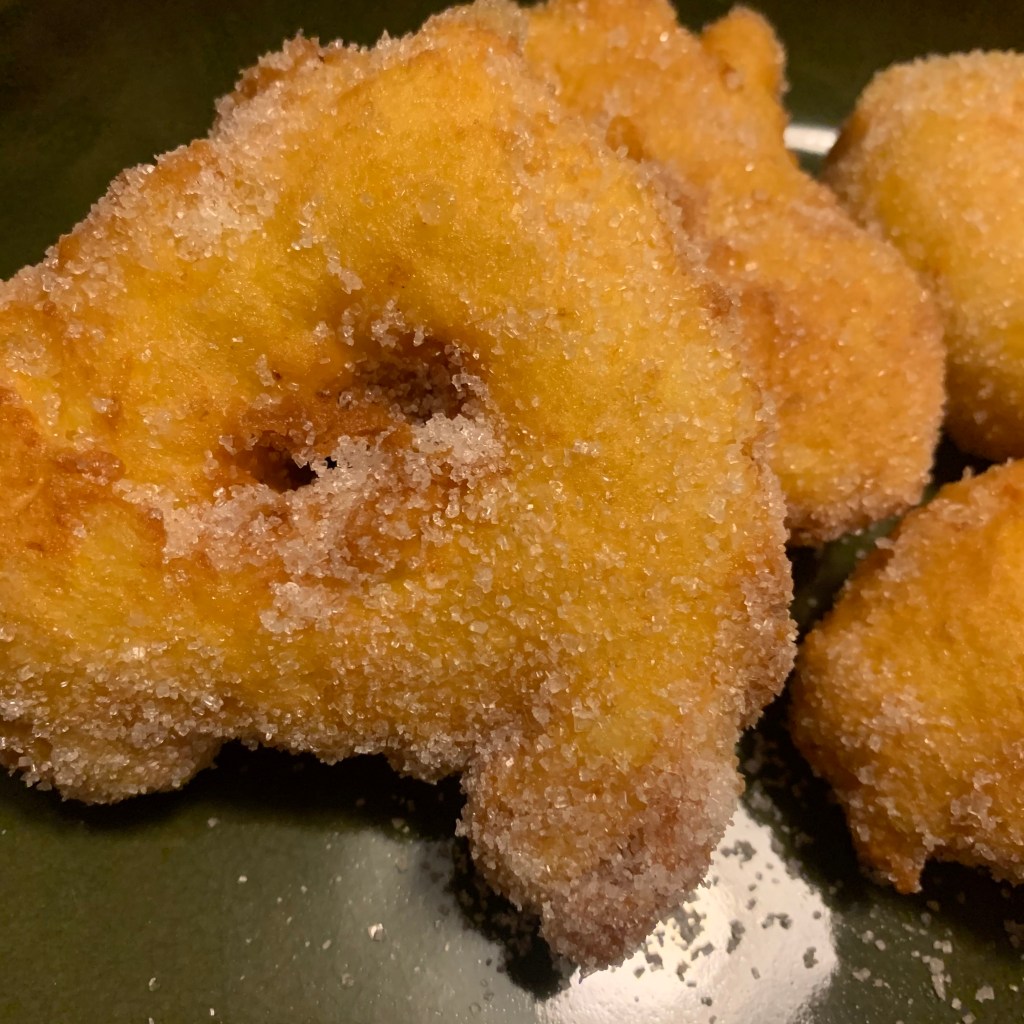 Ma non importa perché l’impasto era quello giusto e al di là della forma… buonissimo. Le ho scolate nella carta assorbente e poi rotolate nello zucchero semolato.