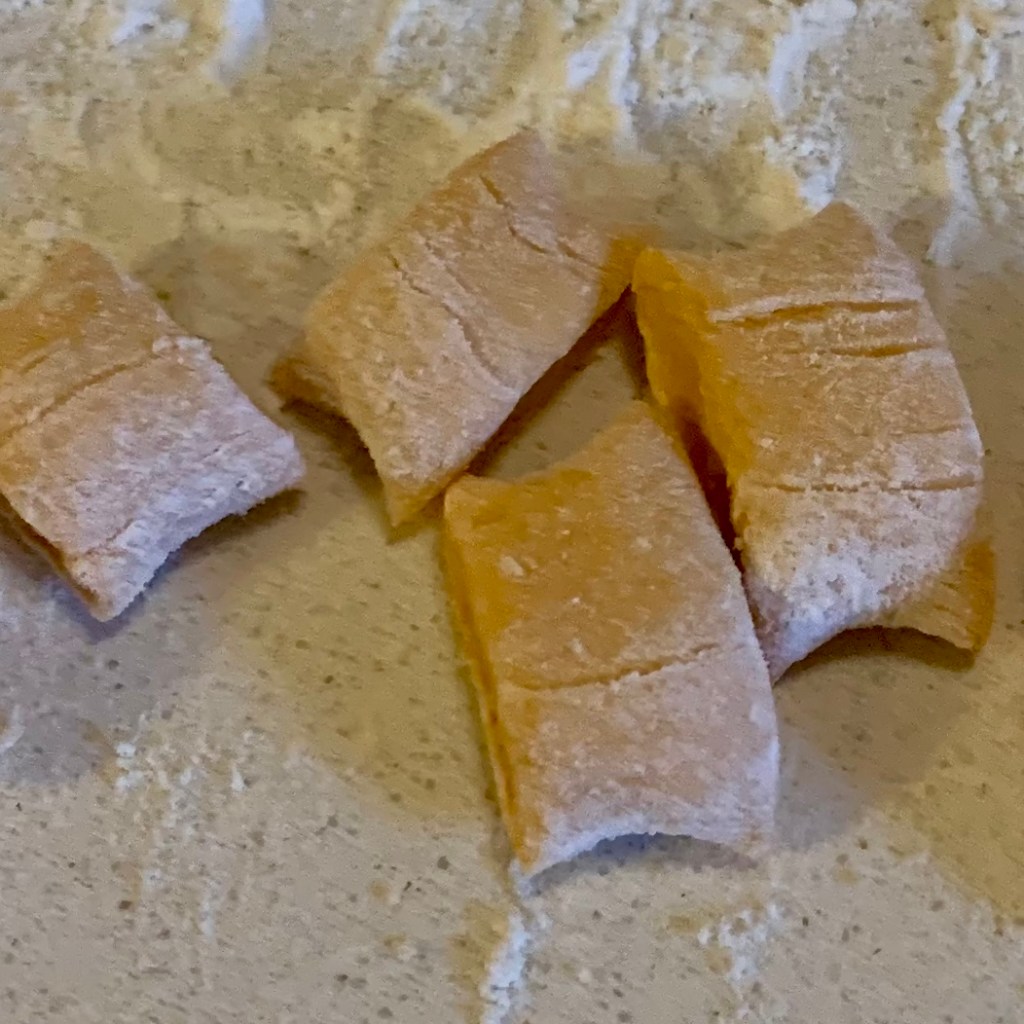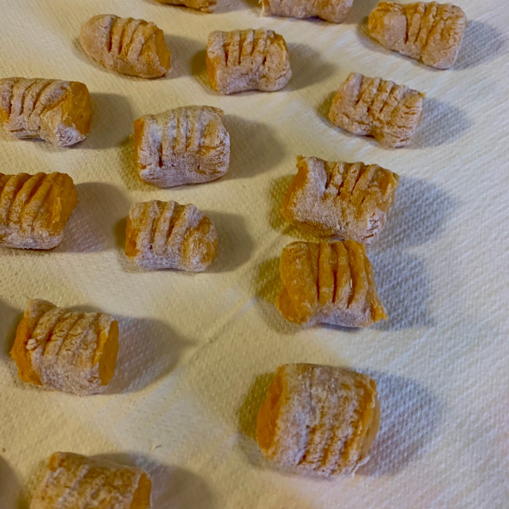 Con le quattro patate americane avanzate di ieri ho deciso di provare a fare degli gnocchi. E’ un esperimento, un azzardo sulla scia di un non bene identificato entusiasmo per la materia prima! La consistenza di questo tubero, una volta bollito, è molto umido ma comunque farinoso. Non sarà facile lesinare con la farina per l’impasto, per evitare che risultino ‘callosi’.