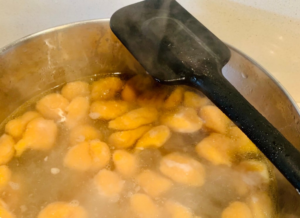 Quando l’acqua nella pentola ha raggiunto il bollore ho salato e buttato gli gnocchi.