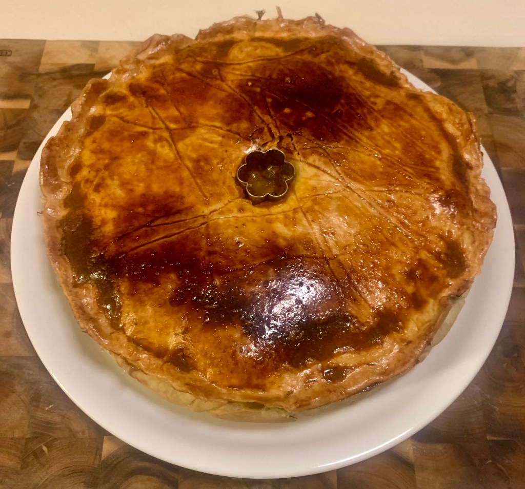 Ho fatto un buco al centro per far sfiatare il vapore in cottura. Ho spennellato con un tuorlo d’uovo sbattuto con poco prezzemolo tritato e infornato a 180 gradi ventilato per 40 minuti circa.