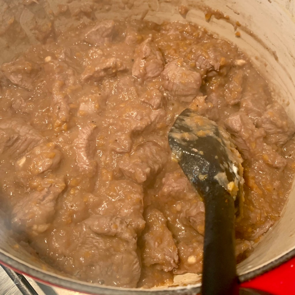 Evaporato l’alcol del vino ho aggiunto un poco d’acqua, ho riportato la fiamma al minimo, ho coperto e lasciato cuocere così per circa 45 minuti. Controllate ogni tanto e se è il caso aggiungete ancora un poco di acqua.