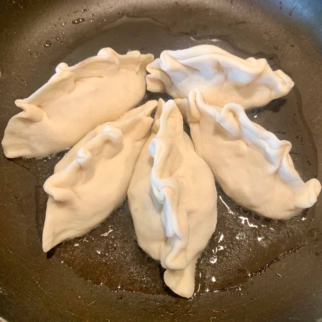 Ho scaldato bene un tegame antiaderente, unto con poco olio, quindi ho sistemato i gyosa lasciando che la base si colorasse per bene, ci sono voluti pochi minuti. A questo punto ho versato qualche cucchiaiata di acqua, ho coperto ed abbassato il fuoco al minimo. Il vapore, in pochi minuti, ha finito di cuocere la parte superiore. Li ho conditi con qualche goccia di salsa di soia e serviti!