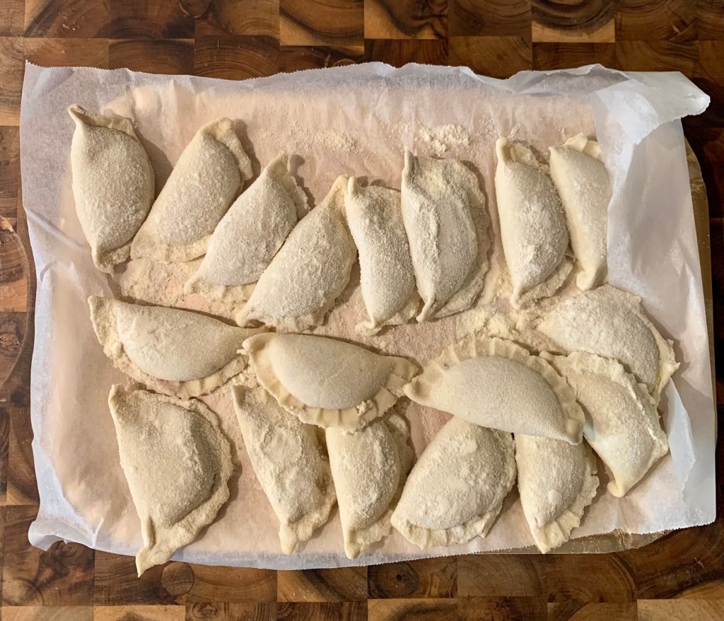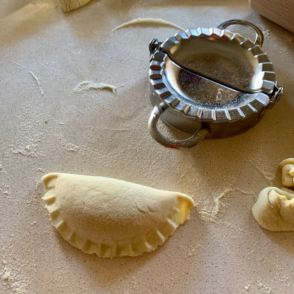 Dopo aver preparato i gyoza ho realizzato quanto fosse divertente preparare la pasta ripiena. Ma invece di fare la sfoglia classica con uova e farina ho voluto fare l’impasto senza uova e con la semola. E’ un impasto che si stende con facilità, è più leggero e si chiude benissimo sia a mano che con le mie nuovissima formine!