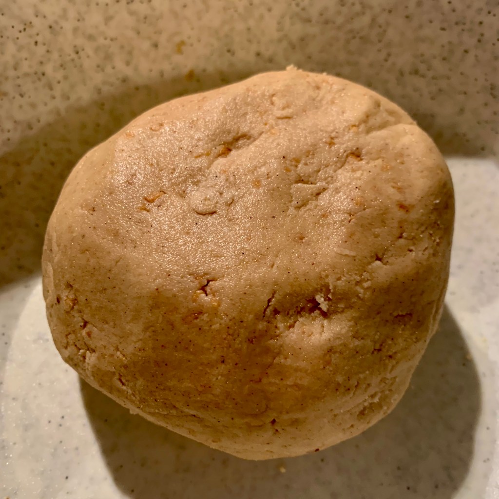 Ho quindi aggiunto le farine al burro ed ho impastato con le mani: inizialmente tenderà a sbriciolarsi ma poi si unirà in un unico blocco d’impasto.
