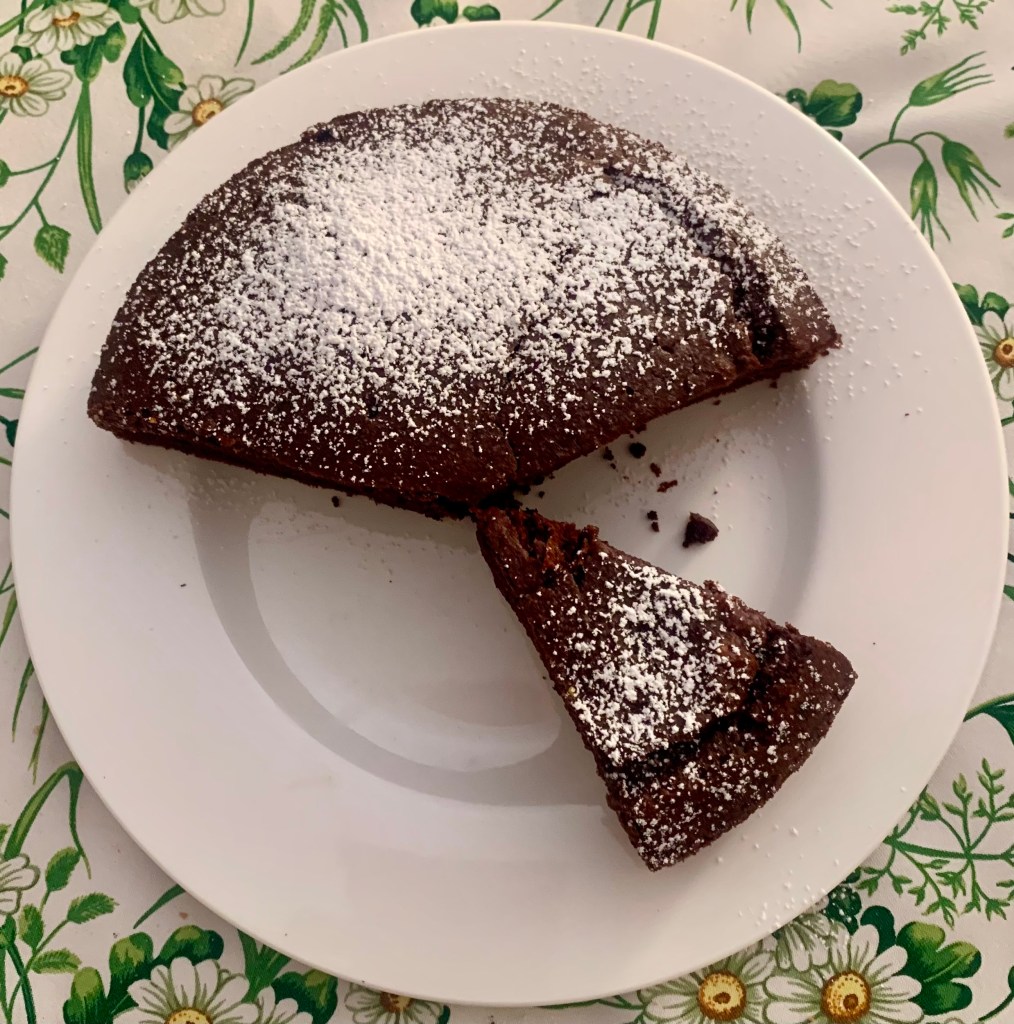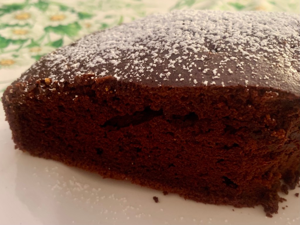Nei prossimi giorni proverò la ricetta di una torta alla quale facevo la corte da mesi. Nell’attesa voglio condividere con voi un’altra ricetta che si è rivelata davvero speciale. Facile da preparare, si conserva per giorni sotto la campana. Per colazione la consiglio a chi adora, come me, il cioccolato e deve stare attento alle calorie: infatti non prevede l’uso di burro, di tuorli, di latte. E’ perfetta sia inzuppata che non, si mantiene umida e soffice a lungo, insomma un trionfo.