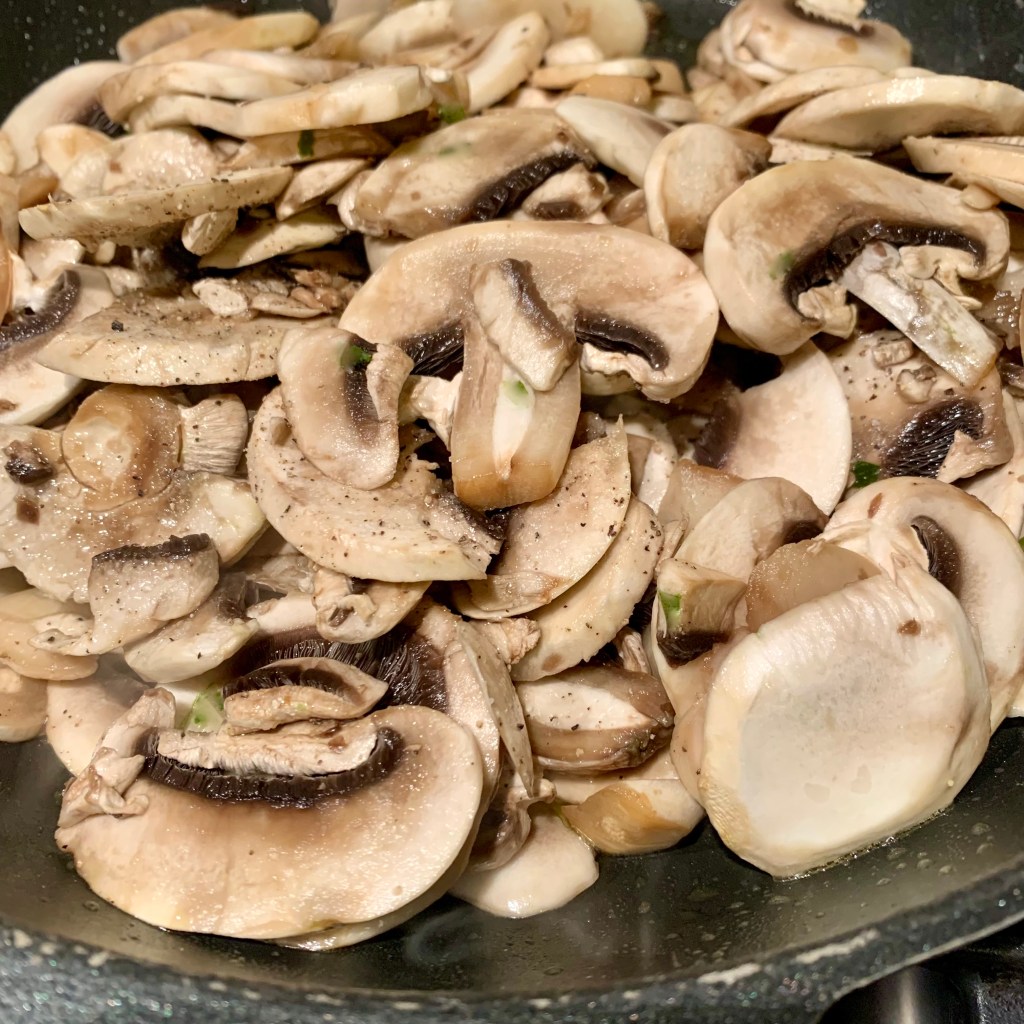 Nel frattempo ho lavato i funghi, li ho affettati e fatti saltare in padella con poco sale e pepe. Quando hanno perso tutta la loro acqua li ho frullati con il mixer ottenendo una crema che ho messo da parte.