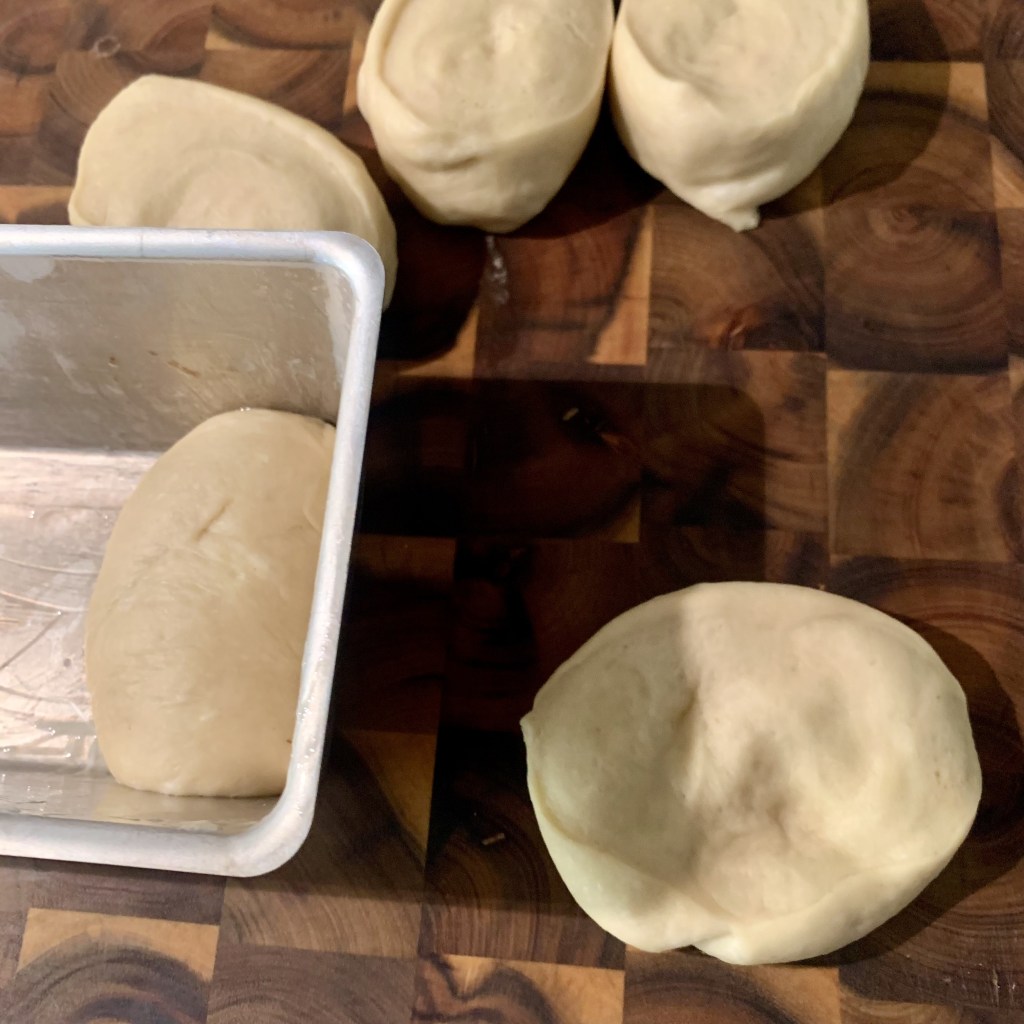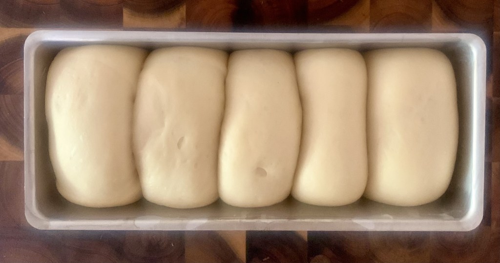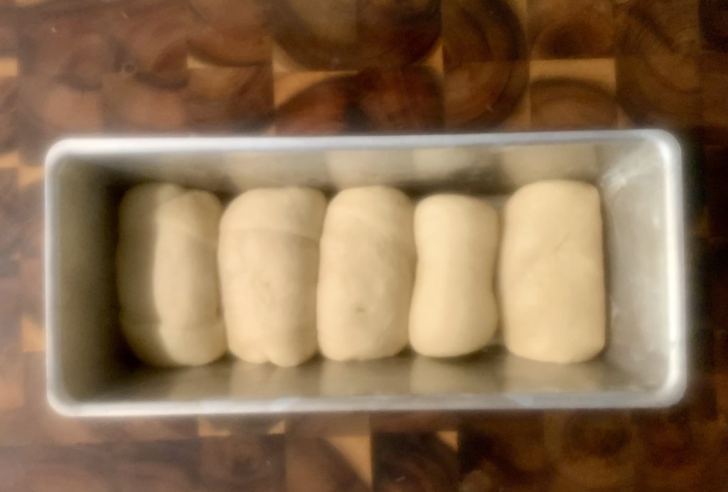 - Potete anche fare metà dose, il mezzo uovo avanzato lo potrete usare per spennellare. In questo caso ho impastato a mano, ottenendo cinque pezzi e usando uno stampo da plumcake 22 cm. X 9 cm.