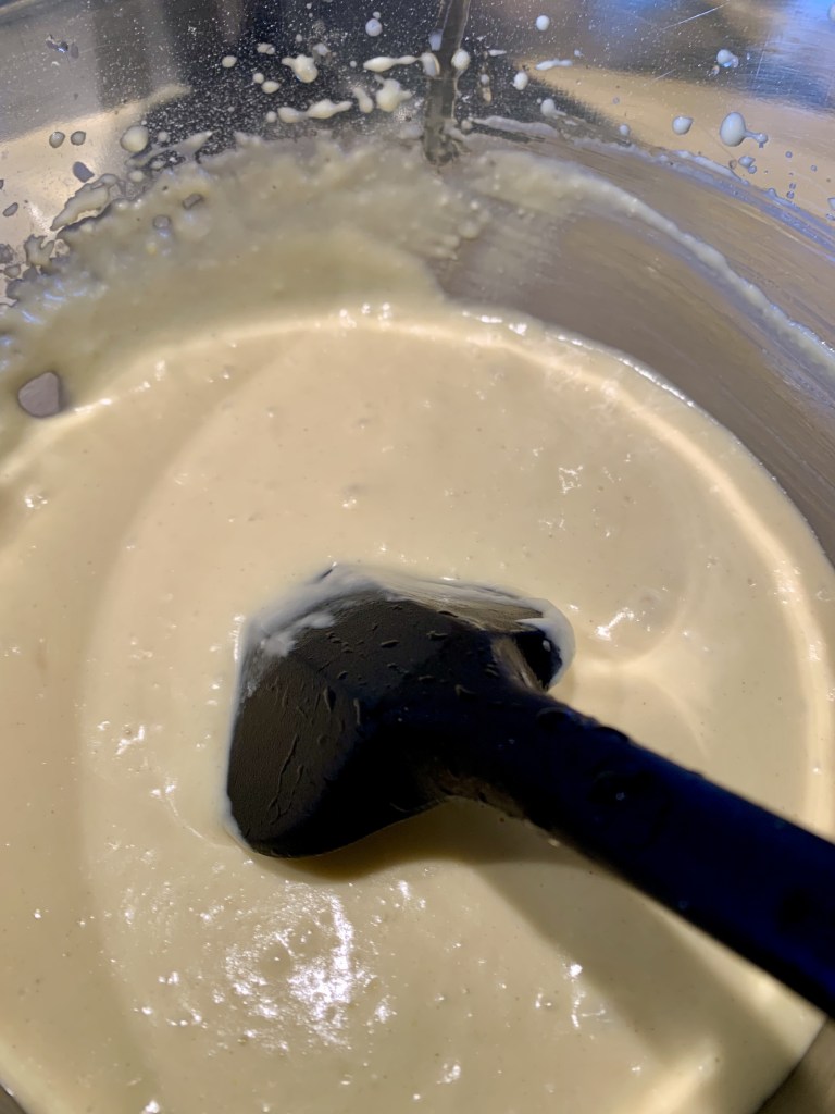 Nel frattempo in una ciotola ho frullato le uova intere con il latte e l’olio, ho aggiunto poi la farina, il lievito e infine il parmigiano.