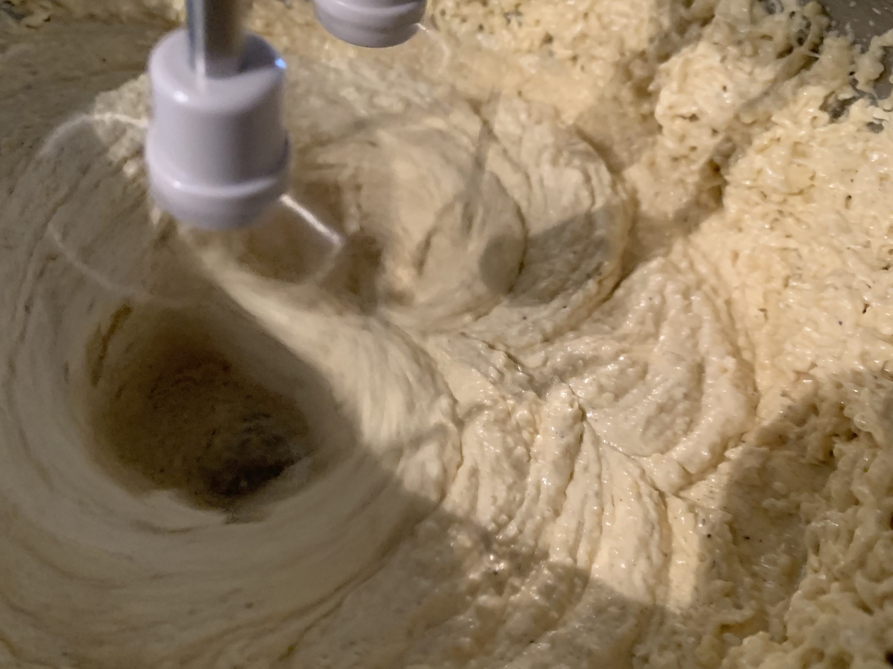 Ho lavorato molto bene il burro con lo zucchero , ho aggiunto poi le uova ed infine la farina di mandorle. Ho ottenuto una crema morbida e rugosa.