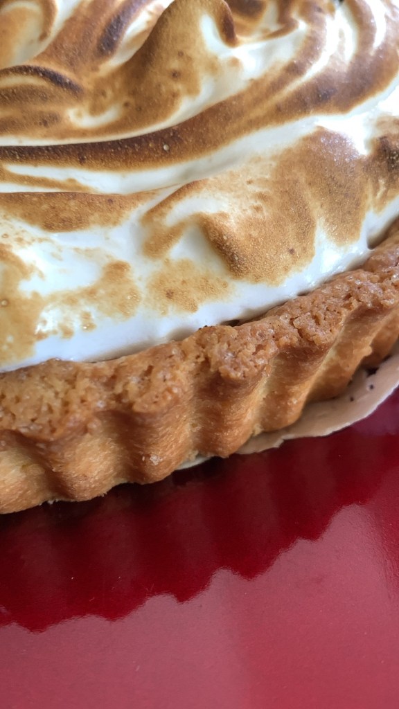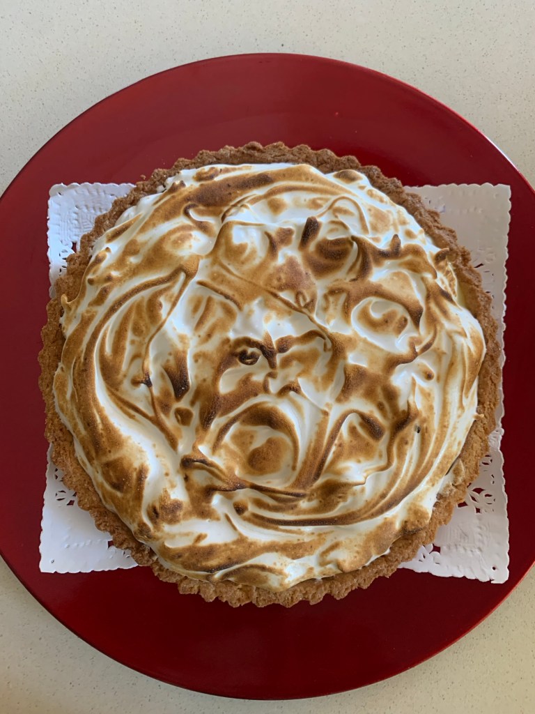 A questo punto potete assemblare il dolce, farcite la base di pasta frolla con la cremino al limone, spalmate con abbondante meringa creando ciuffi e onde e con il cannello caramelliate la superficie. Non deve essere troppo scura…